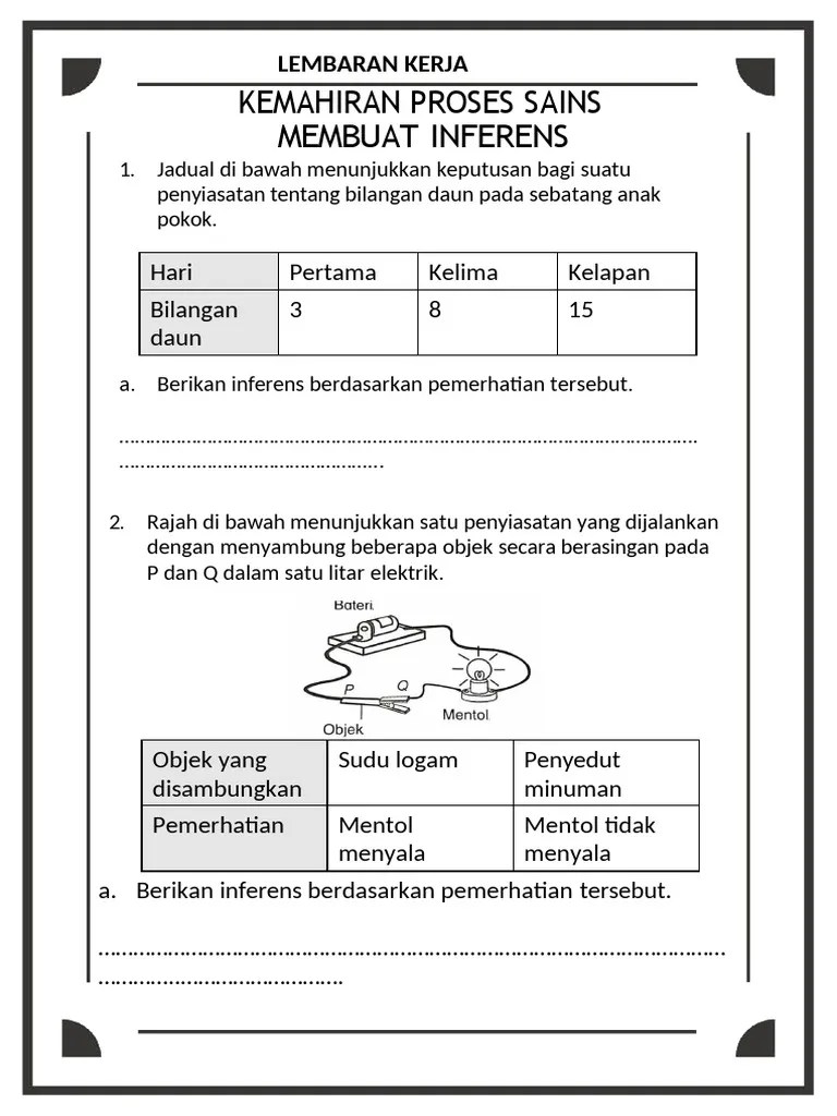 Sains tahun 5 marikh : Menyambungkan litar elektrik seperti dalam lembaran kerja 40. Sains tahun 5 marikh : Mentol menyala dan tidak menyala.